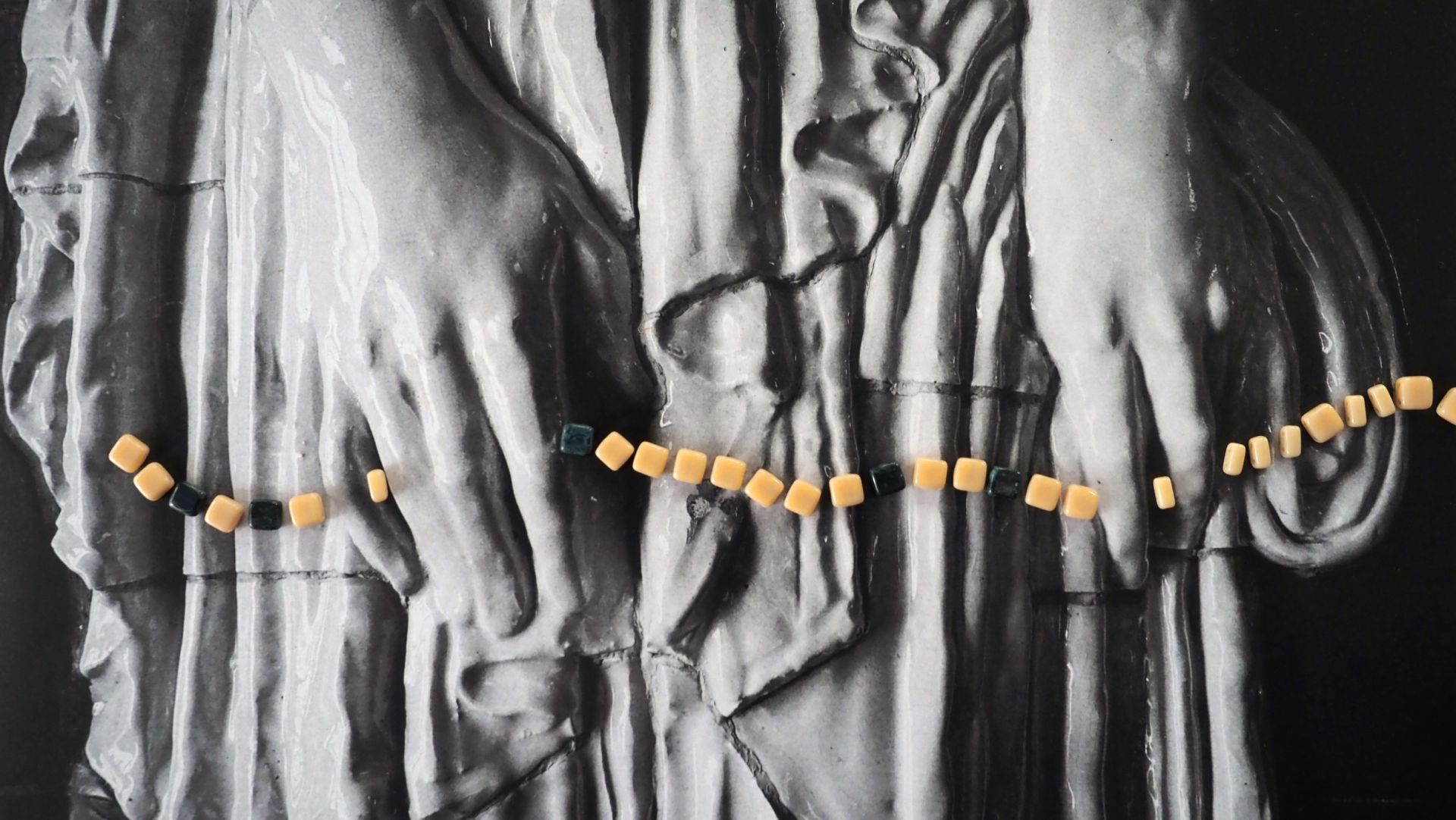 In her site-specific interventions, sculptures, drawings, and films, Hera Büyüktaşcıyan unearths the layered material memory of various unstable spaces and places through the notions of absence and (in)visibility. A recurring theme in her practice, including the newly commissioned film, is the aquatic nature of architecture—the tension between the solidity of the constructed environment and the fluid nature of memory, the tidal and meandering movements of remembering and forgetting. In the film, referencing the allegorical work of the Czech philosopher, pedagogue, and theologian John Amos Comenius, the underground labyrinthic world of the wastewater treatment plant in Bubeneč features prominently. Its main function—purifying the city’s wastewater—serves as a metaphor for the washing out, or whitewashing, of both historical narratives and orientalist representations of otherness. In the stop-motion animation sequences, tile-like glass beads flow from the cavities of the wastewater plant to other buildings linked with water, such as public baths, or covered in glazed Rako tiles, such a hotel lobby. It is under the smooth surface of the figurative and ornamental tiles, produced in Rakovník and found across Prague from the Bubeneč plant to Hotel Imperial, that the artist is searching for the underlying tensions between the competing ideas of purity and cultural contamination characteristic of Prague as a palimpsest of multiple temporalities and communal imaginaries.