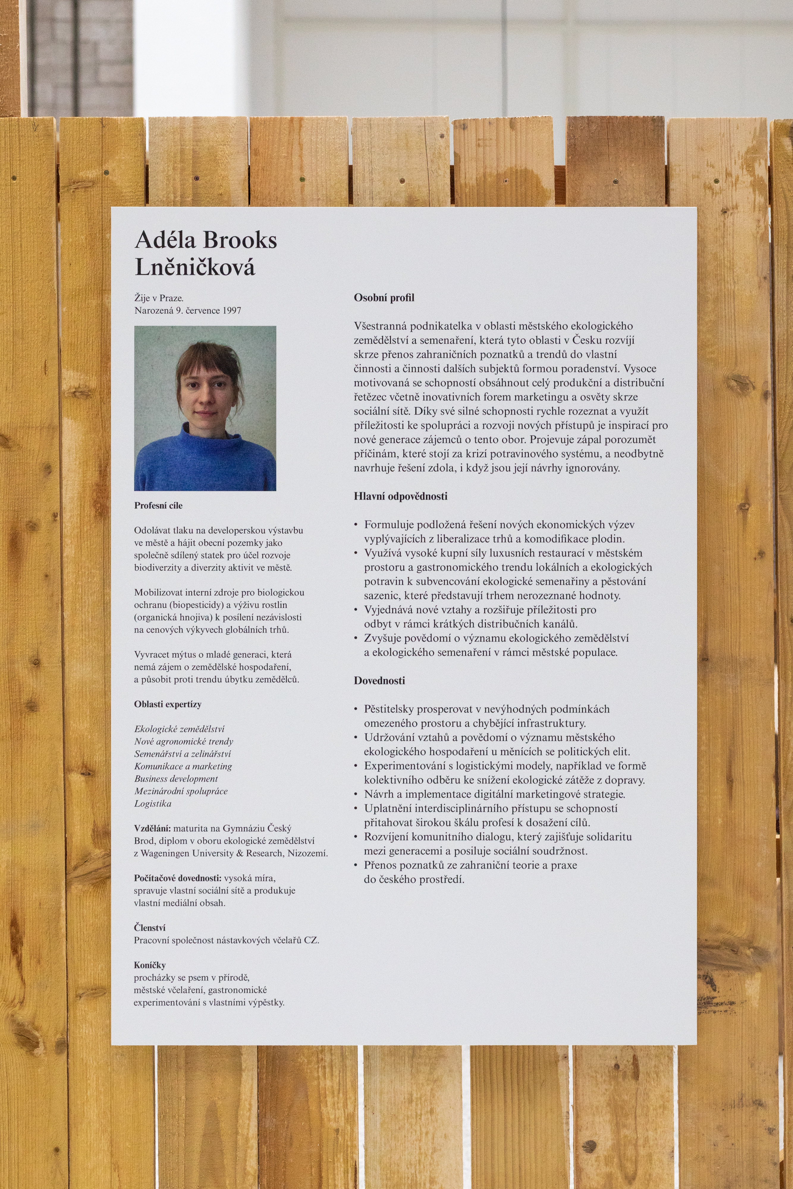 Peasant CV, 2015–ongoing, part of the installation of Tomáš Uhnák – The Spectre of Peasantry, 2024, Biennale Matter of Art 2024, National Gallery Prague – Trade Fair Palace (c) Jonáš Verešpej