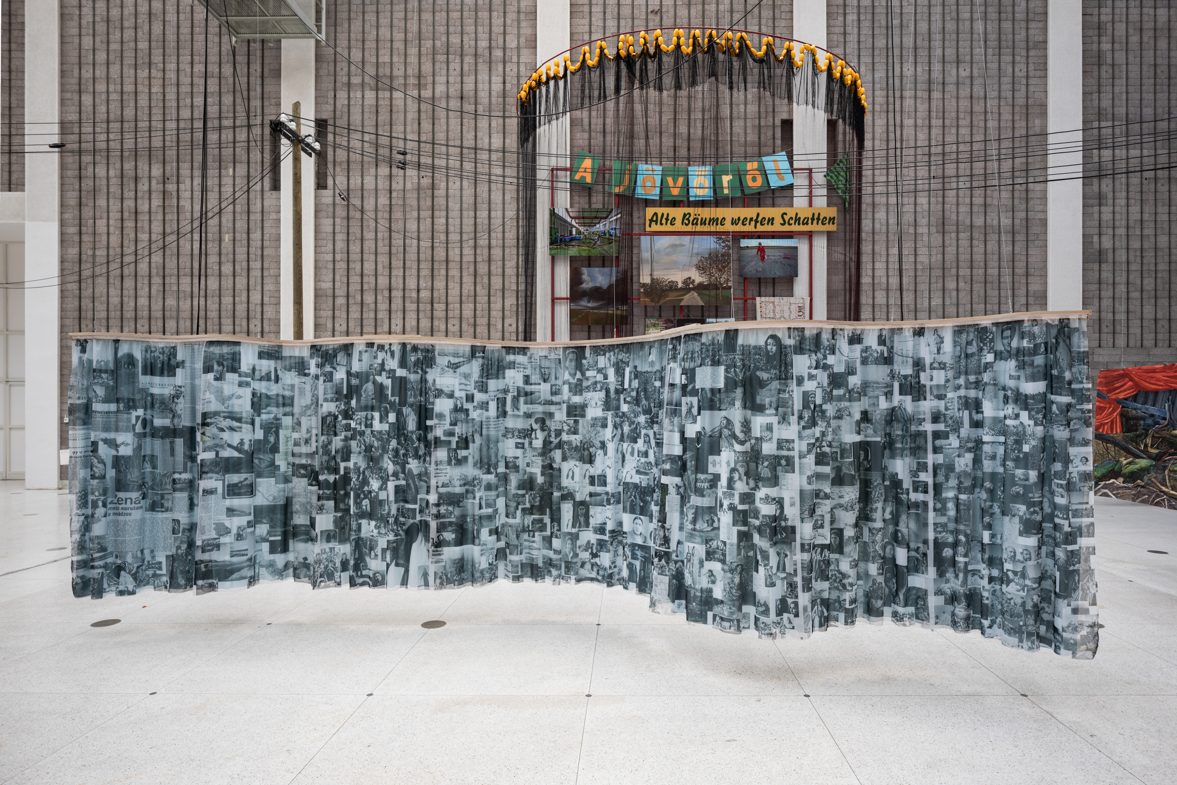 DAVRA (Central Asia, est. 2021) looks for historical connections between the use and misuse of women’s work and water. The artists study how women danced the Cotton Dance (Paxta Raqsi) to motivate the men working on the construction of the canal, blurring the line between leisure and labor. They present their findings in different forms: films, photos, textile collages, and archival material. The installation's shape mirrors the shape of the Syr Darya River. Carefully re-edited film chronicles tell the story of how women and water were misused for industrial ends in cotton production. DAVRA creates new portraits of the changing rivers in the Tashkent region and along the Fergana Valley. They transform cotton pickers’ aprons into sensitive collages to re-imagine relations between water, women, dance and cotton.