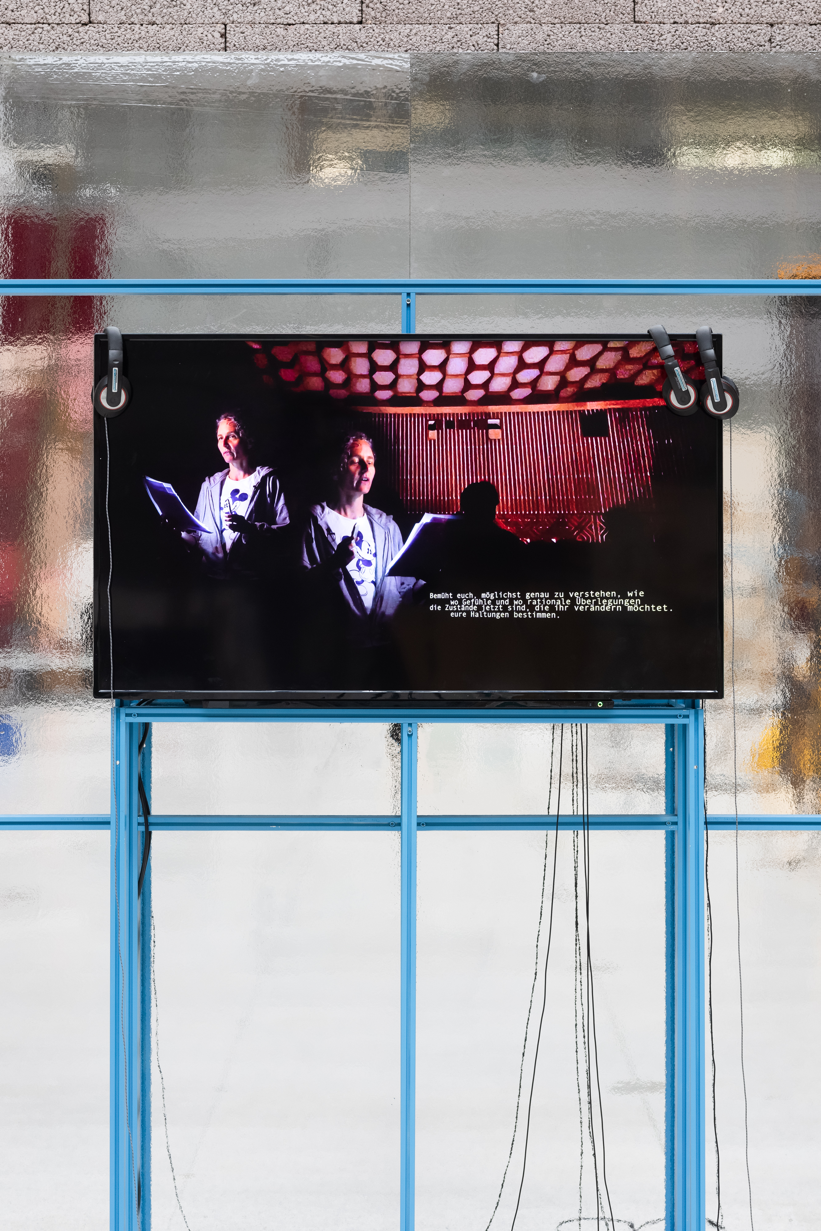 Elske Rosenfeld (lives in Berlin, b. Halle (Germany), 1974) is an artist who pays close attention to how society changes during social uprisings and revolutions. In her works, Rosenfeld doesn’t just rely on historical facts, but also looks at the experiences of people who were there and how they felt in their bodies. She created an Archive of Gestures to help learn from these experiences. The Archive of Gestures is a collection of records, traces, events, and speeches that helped bring about change in society. A gesture is a simple movement of the body that expresses an idea or statement. You can repeat it or perform it from one revolution to the next. The work gives examples of different actions during protests in different countries. The Arab Spring was about circling – protesters kept moving while remaining in place. During the democratic uprisings in Germany, people were interrupting official meetings and gatherings. During the Gezi Park protests in Turkey people were standing still. At Matter of Art she presents the gesture of speaking. She reads political statements from different groups in East Germany in 1989– 1990 – striking workers, gay activists, and feminist groups. These groups were fighting against the government and for their rights. The artist acknowledges these voices and their struggles against the corrupt state but also the unification of Germany under capitalism. The voices mix together to create a statement for a better future.