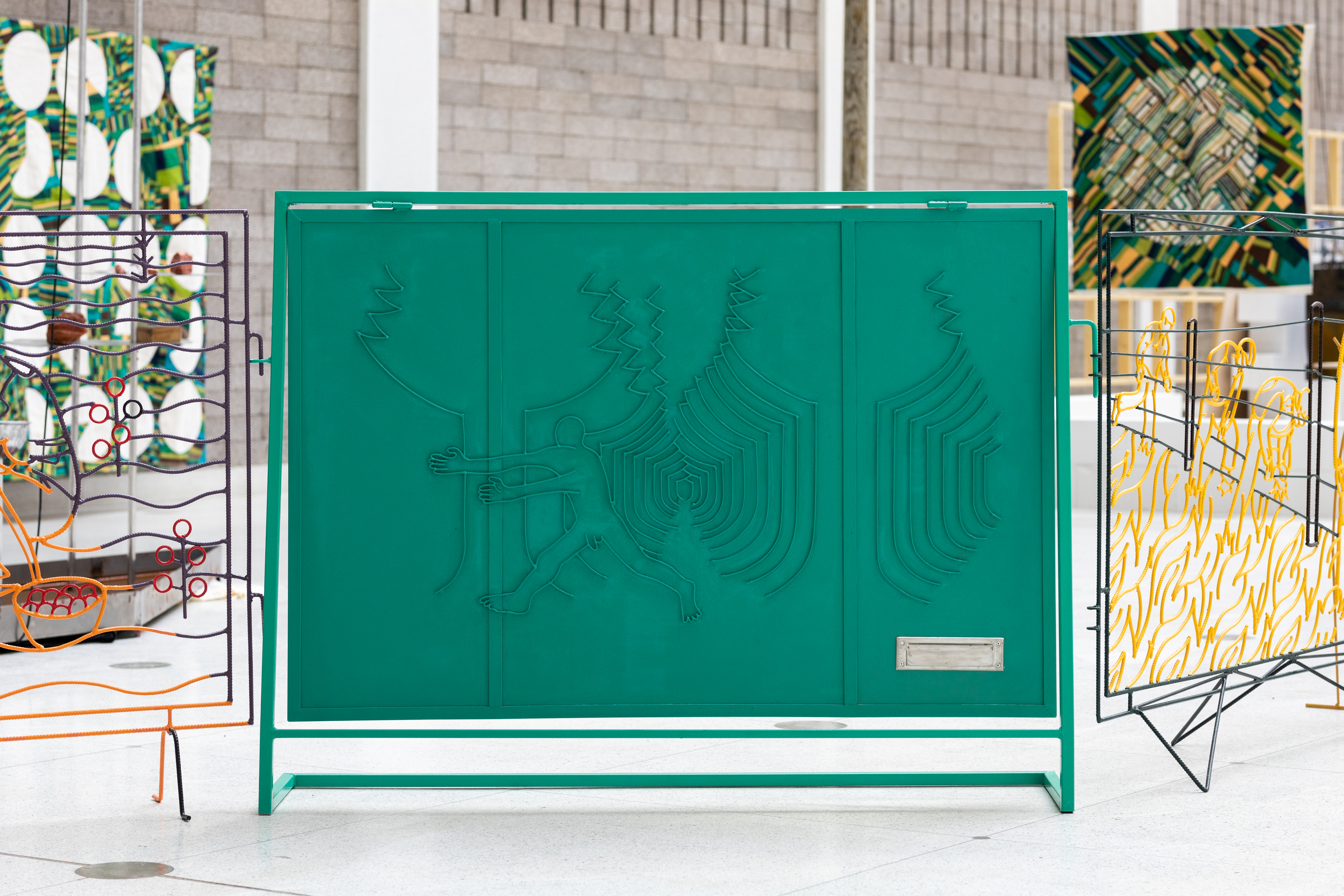 Fence-Scape I–VIII / 2013–2024 / installation / 8 sculptures (160 × 190 × 30 cm) / steel / courtesy of the artists, Péter Küllői, Judit Reszegi, Andrea Dénes and Árpád Balázs, and Péter Bencze