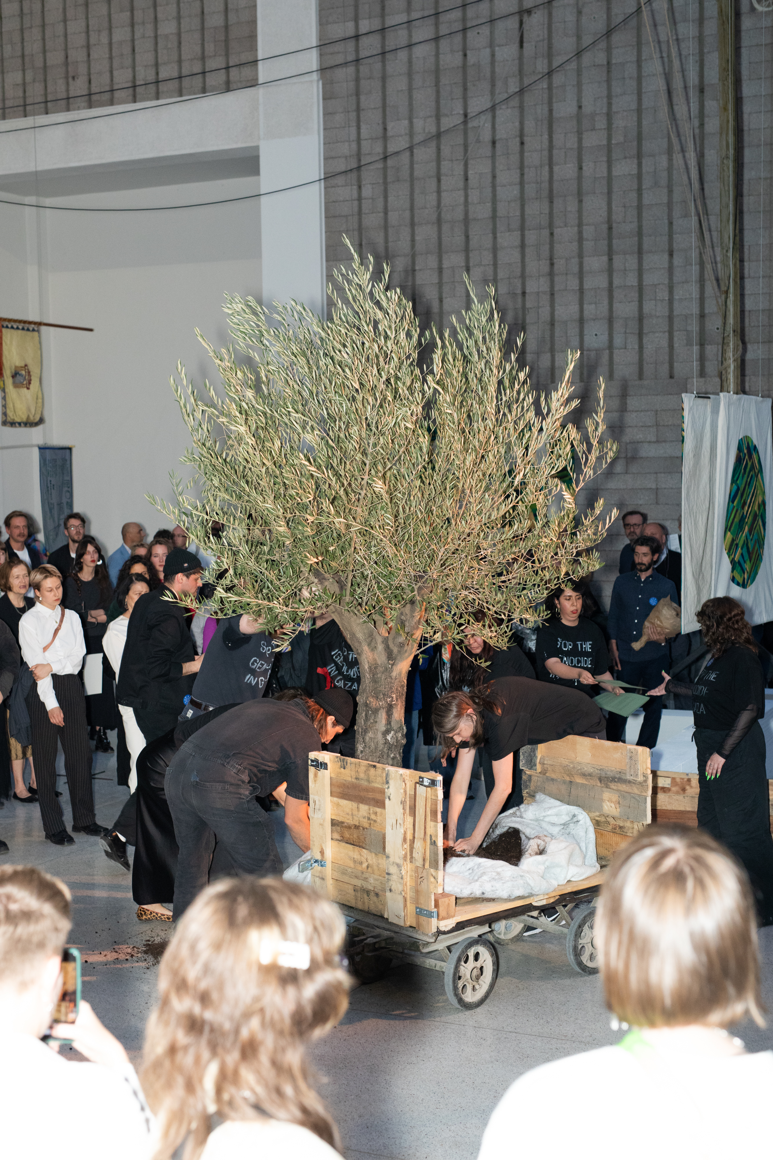 The collective stopgenocidevgaze returns to the Trade Fair Palace for the second time in the scope of the Biennale Matter of Art. As part of its performance during the opening, it will bring a centuries-old olive tree into the space, which it will then let die gradually over the course of the exhibition from June to September. In doing so, they imaginatively connect the tree with the tragic fate of the Palestinians in Gaza and the occupied West Bank.