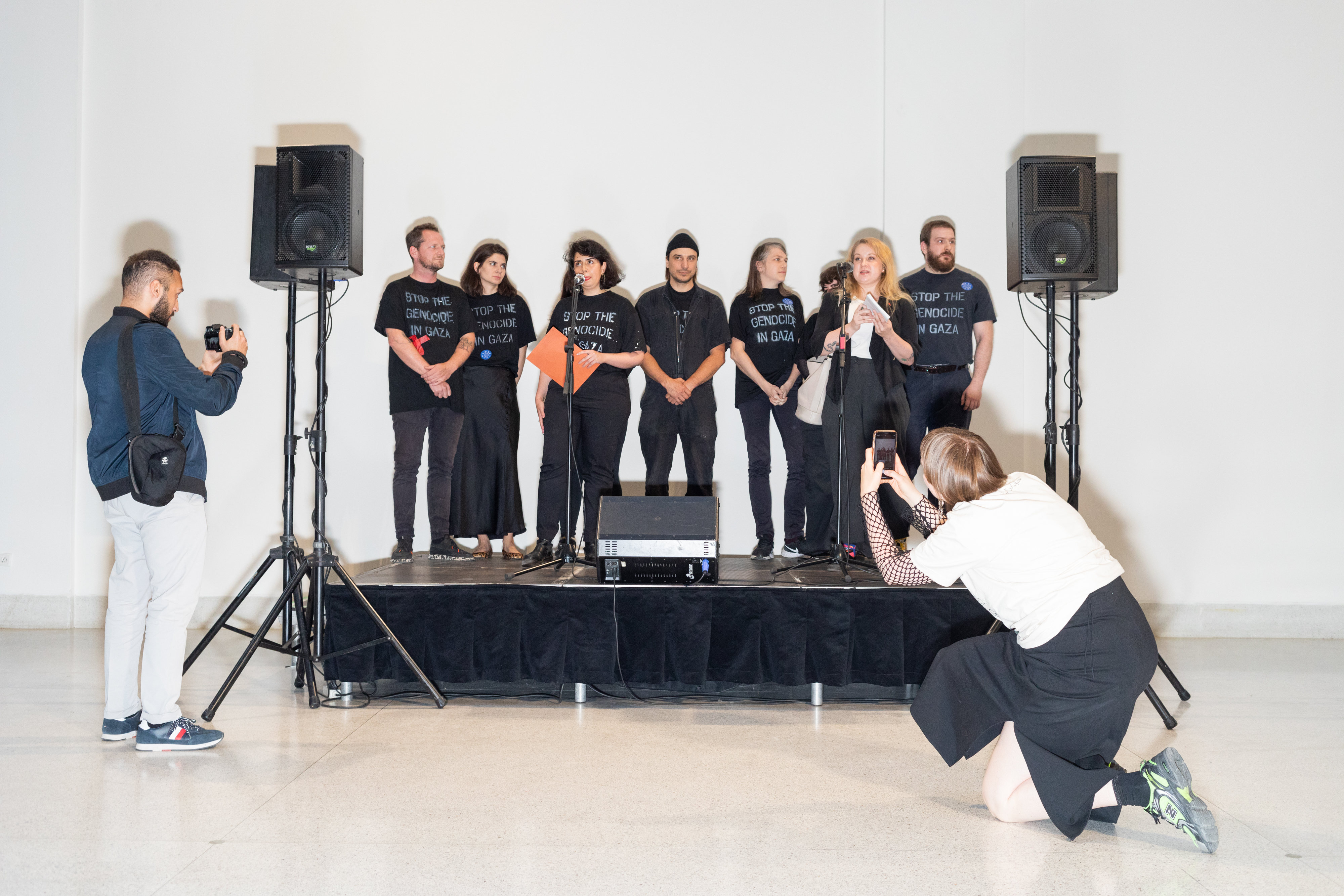 The Prague-based art collective stopgenocidevgaze was created to highlight the silence surrounding the humanitarian crisis in Gaza. Its first joint action was a guerrilla happening which disrupted the official opening of the National Gallery Prague’s spring season in order to express solidarity with the Palestinian population and to appeal for a change in the attitude of the Czech media and art institutions. The collective is now returning to the National Gallery with a new project to continue its mission: to spread awareness of what is happening in Palestine and to change the mainstream narrative in the Czech public space.