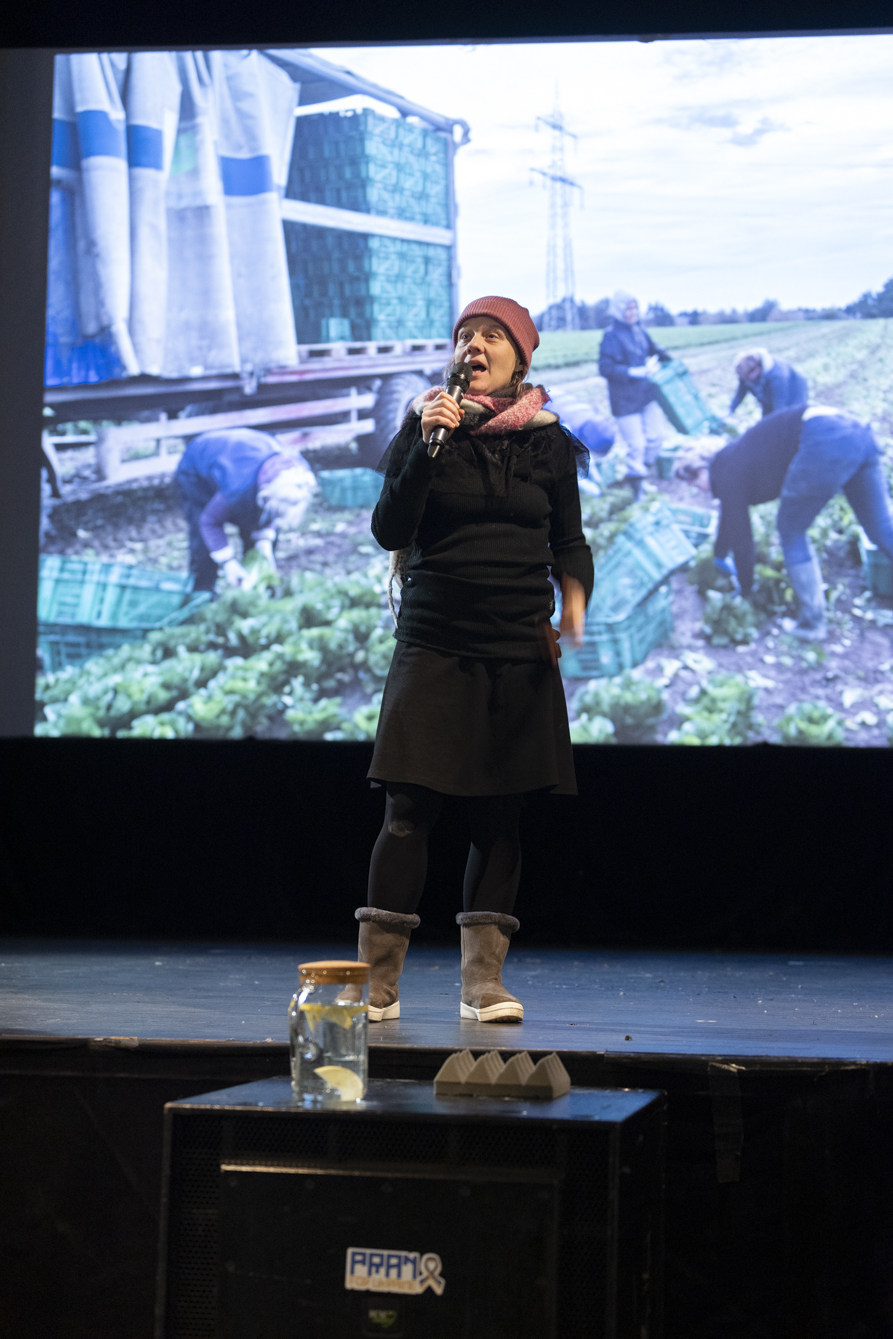Saša Uhlová will show a short excerpt from her collaboration with Apolena Rychlíková on their new film Limits of Europe before its world premiere. The film asks: “Why are we still witnessing such glaring economic inequality between the ‘West’ and the ‘East,’ and why are so many people forced to leave their families to look for work far from their homes?” In a conversation with Alicja Rogalska and Katalin Erdődi (co-curator of Matter of Art 2024), Uhlová will share her experiences from working undercover alongside seasonal workers from Poland at a large farm in Germany.
