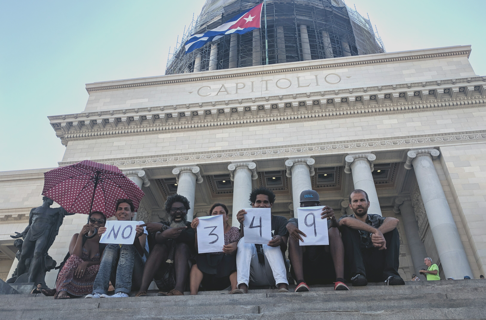 Artists protesting Decree 349 in front of the National Capitol Building, Havana, 2018, photo © artist’s archive
