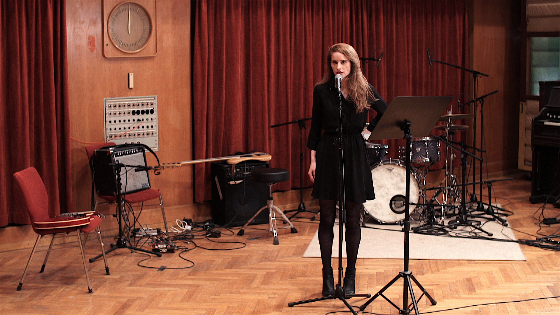 Hajnal Németh, Work Song – As Time Goes By, 2016, musical film, 55', HD, stereo, music by Brian Ledwidge Flynn, delivered by Gábor Altorjay, Desney Bailey, Knut Berger, Timothy Beutler, Polina Borissova, István Dankó, Lea Draeger, Júlia Koffler, Albert Orgon, Simon Fagan, and band, recorded at Studio P4, Berlin, commissioned by Berlin Senate, film still by István Imreh